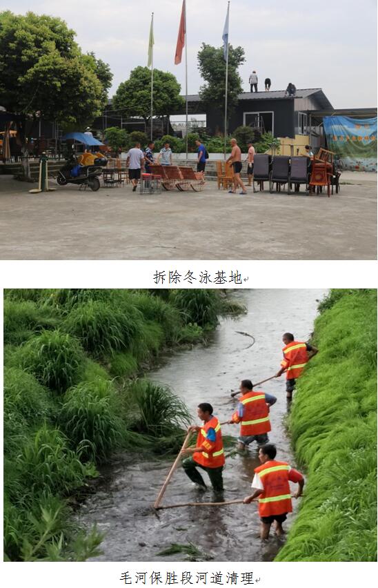 (四)突出“实“字。加强流域岸线管理保护,强化河道综合执法。其中,对岷江陈家湾冬泳基地、塔子坝河道违规经营、青龙先锋化工弃渣等岷江河道内违法违规问题进行了处理,组织部门联动、联合执法,共拆除河道棚屋26处,3800平方米。转运河道弃渣2万余方。严格整顿河道采砂秩序,对无证采砂、超范围、超时间、超许可量重拳打击,全区关停侵占河道加工砂石企业10家。